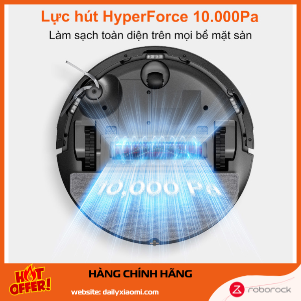 Roborock Q7 TF+ sở hữu lực hút HyperForce 10.000 Pa – con số ấn tượng trong tầm giá, mạnh hơn hẳn robot hút bụi lau nhà phổ thông (thường chỉ 4.000-6.000 Pa).