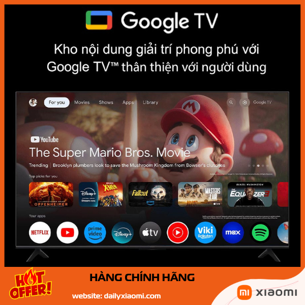 Xiaomi TV 55 inch có tiếng Việt không? Có, bản chính hãng hỗ trợ tiếng Việt đầy đủ ngay từ đầu, menu, giọng nói Google Assistant và các ứng dụng.