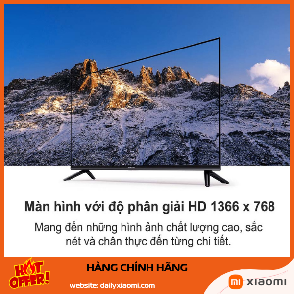 Tivi Xiaomi A32 inch quốc tế sử dụng độ phân giải HD Ready 1366x768 pixel (một số model A Pro 2026 nâng cấp QLED nhưng vẫn HD). Tấm nền LED direct-lit, độ sâu màu 16.7 triệu, góc nhìn 178 độ.
