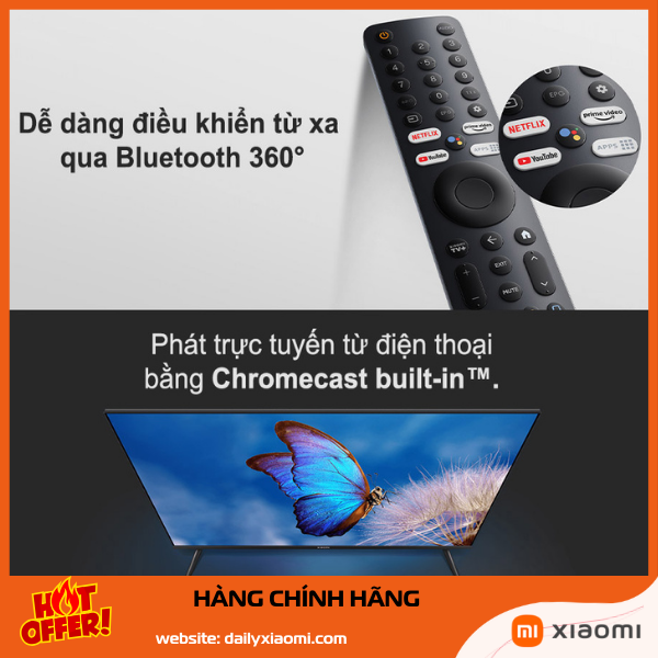 Google Assistant tiếng Việt chính xác cao: “Mở Netflix”, “Tìm phim hoạt hình”, “Tăng âm lượng”. Chromecast built-in chiếu màn hình điện thoại nhanh chóng. Hỗ trợ AirPlay (iPhone) và Miracast (Android).