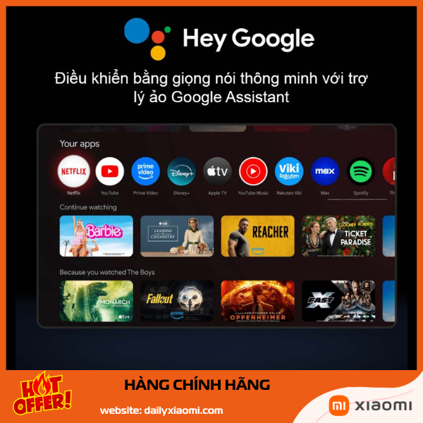 Kho ứng dụng khổng lồ với Netflix, YouTube, Spotify, VieON, FPT Play, K+ đều có bản quyền đầy đủ và hỗ trợ 4K Dolby Vision. Google Assistant hỗ trợ tiếng Việt tốt, bạn có thể ra lệnh bằng giọng nói để tìm phim, điều khiển nhà thông minh hoặc hỏi thời tiết. Chromecast built-in cho phép chiếu màn hình từ điện thoại dễ dàng.