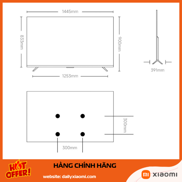 Tivi Xiaomi 65 inch là dòng televizyon thông minh với màn hình đường chéo 65 inch (tương đương khoảng 165 cm). Đây là kích thước phổ biến nhất trong phân khúc màn hình lớn của Xiaomi tại Việt Nam, thuộc các series như A, A Pro, S Mini LED và Redmi.